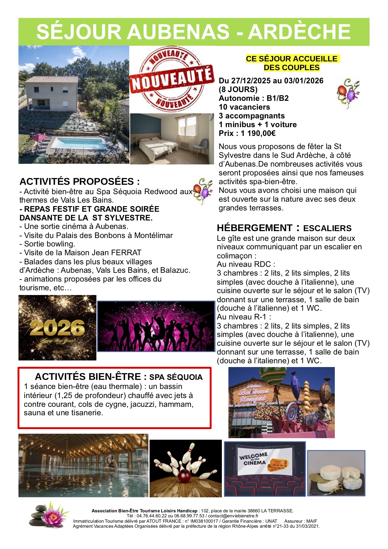 SÉJOUR AUBENAS - SUD ARDÈCHE (Autonomie B1/B2) : du 27/12/2025 au 03/01/2026 TÉLÉCHARGER SÉJOUR AUBENAS-SUD ARDÈCHE